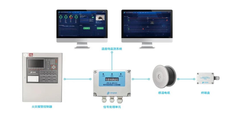 在電纜密集區(qū)域,通過纜式線型差定溫火災探測器的差溫特性和定溫特性,對電纜的運行溫度進行實時監(jiān)測,可及時探測過熱和異常升溫情況,以便于更快速地進行火災救援。